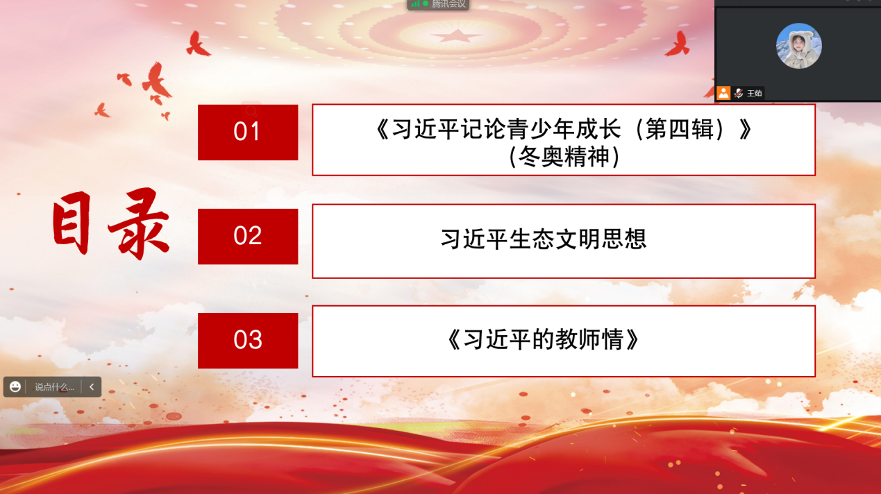 本次主题班会各支部均在线上开展学习。22级两个支部紧紧围绕习近平总书记讲话精神进行学习,下定决心刻苦学习知识,坚定理想信念,磨练坚强意志,锻炼强健体魄,为实现中华民族伟大复兴的中国梦时刻准备着。21级两个支部共同观看《习近平的教师情》,诸位同学感触颇深,认识到作为师范生应当牢固树立中国特色社会主义理想信念,自觉增强立德树人、教书育人的荣誉感和责任感,珍惜时光,刻苦学习,争做让党和人民满意的“四有”好教师;“教师是人类灵魂的工程师”,思政12102支部的张星娟认为,教师应传递更高的思想价值,提高学生的思想觉悟,让学生沐浴在真理的光辉之下。20级两个支部着重学习了习近平生态文明思想,明确坚持和加强党对生态文明建设的全面领导,深化了对人与自然生命共同体的规律性认识,认识到坚持生态环境保护需要标本兼治、常抓不懈,坚持全球视野,共同建设美丽地球家园。19级两个支部共同学习了“无奋斗,不青春”的冬奥精神,主讲人以冬奥场上奥运健儿们自强不息、奋勇拼搏的事例,诠释了何为冬奥精神,呼吁大家以追求卓越的进取心登峰造极,绽放时代光华。