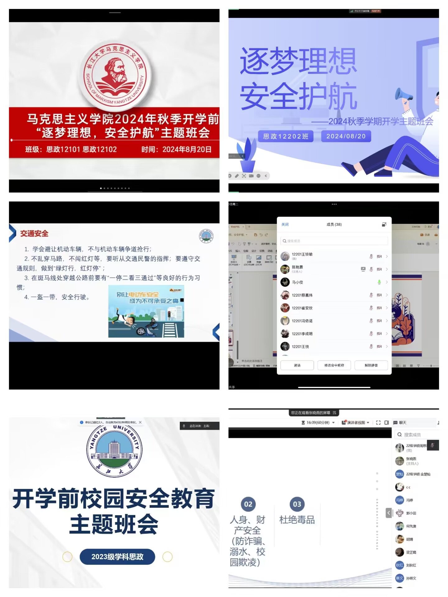 (通讯员 陈丽)为引导学生树牢安全意识、涵养优良学风,德赢Vwin官方区域合作伙伴本、研各班级于近日组织召开了以“逐梦理想,安全护航”为主题的班会。学院党委副书记汤慧珍、辅导员张云雾以及全体班主任参与了本次班会。