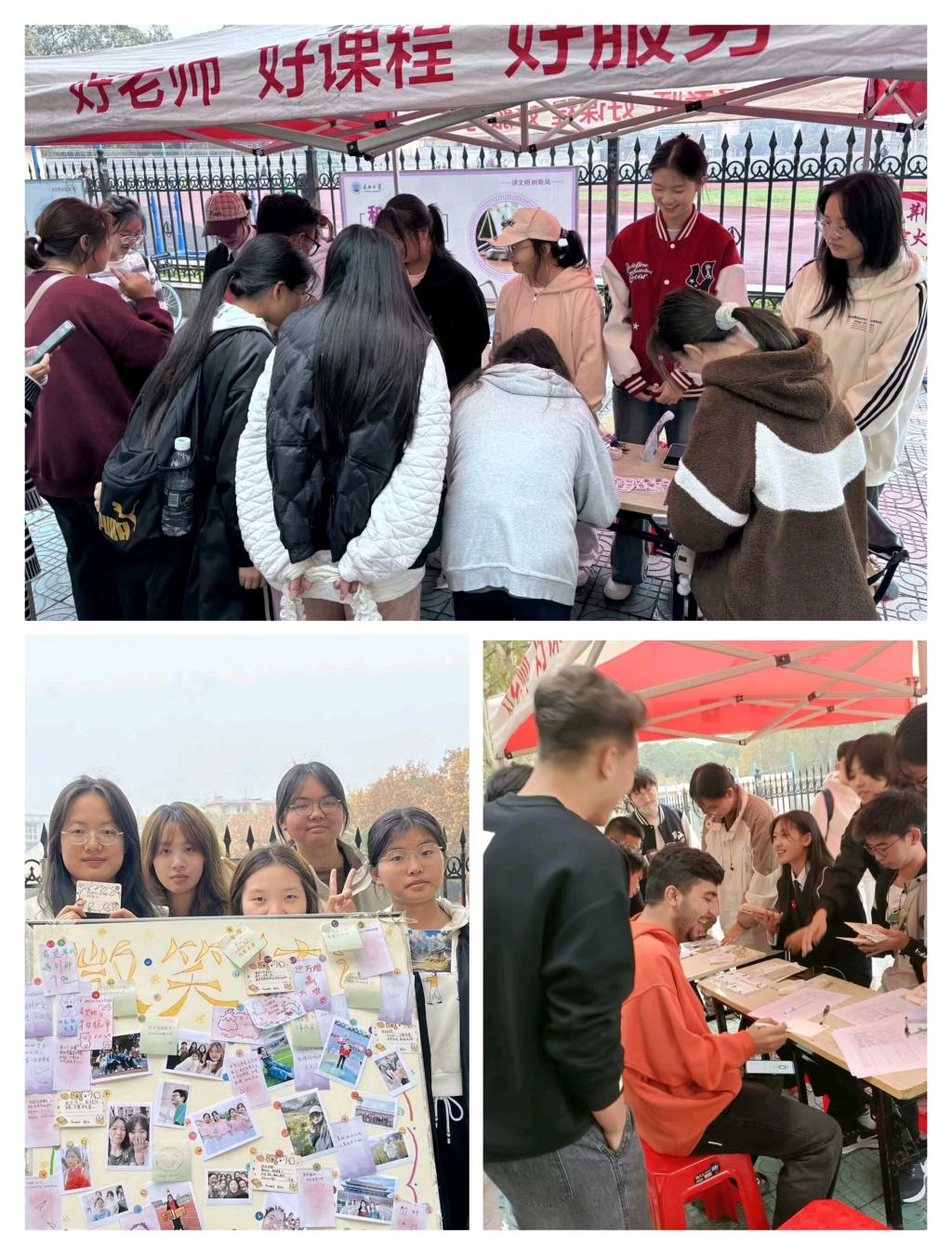 本次活动以“微笑传递”为主题,旨在引导同学们传递快乐的情绪。活动前期,各班心育委员积极动员同学们拍摄生活中有关微笑的照片,分享照片背后的小故事。同学们所提交的照片和故事以照片墙的形式在万品汇广场进行了展示。在本次活动中,同学们不仅可以拿起笔在展板上留下暖心的话语,也可以将祝福写在小卡片上传递给其他同学。活动现场大家纷纷写下自己的祝福,并与照片墙合影留念。