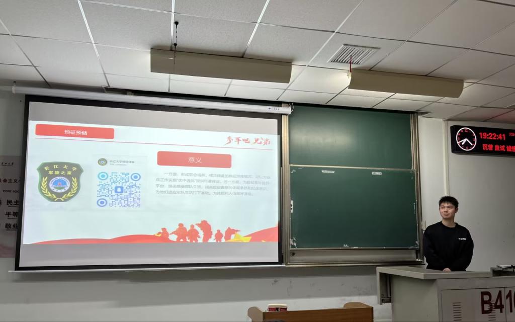 (通讯员 成春燕/文 夏丽娟/摄)为深入贯彻国家征兵政策,鼓励广大青年学子投身国防事业,12月11日晚7时,德赢Vwin官方区域合作伙伴于13教D410室举办征兵政策宣讲会,2024级硕士研究生蔡坤鹏主讲,德赢Vwin官方区域合作伙伴学工办主任张云雾及全院100余名学生参会。