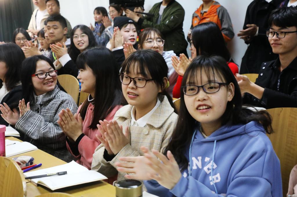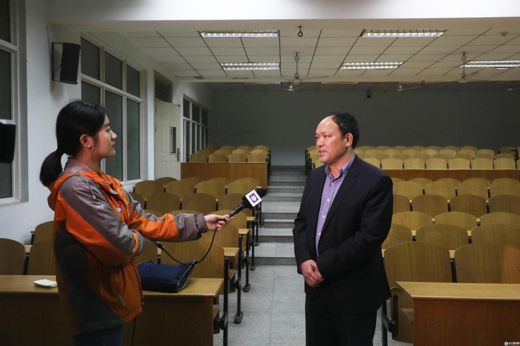 晚9时许,203教室响起热烈的掌声,《生命长江》的首堂课圆满落幕。讲授结束前,两位主讲人现场回答了同学们的提问。讲授结束后,两位主讲人还相继接受了荆州电视台记者的专访。