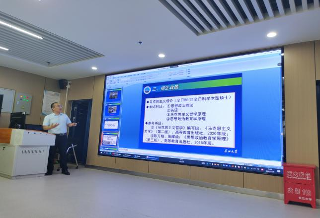 随后,主持人涂江波为大家详细地介绍了学院2023年研究生招生政策,为让更多优秀学生深入了解和报考德赢Vwin官方区域合作伙伴提供了参考,同时,硕士生导师代表分别对马克思主义理论下的二级学科进行了介绍,为各位同学报考、备考提供借鉴。