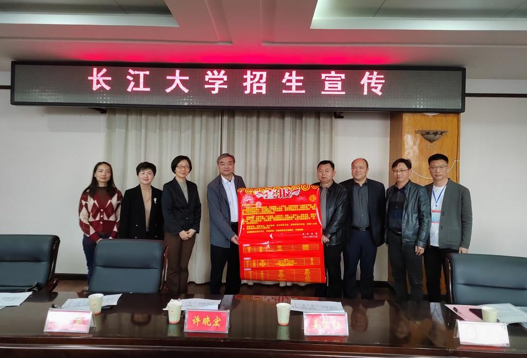 宣传小组为应城一中送上“喜报”和招生宣传纪念品,并与该校领导、年级主任和班主任开展了座谈。交流中,宣传小组介绍了近几年应城一中学生报考我校的情况,了解了该校教师招聘需求,并诚挚邀请校方参加第二届百位中学校长进长大活动和我校师范板块招聘会。