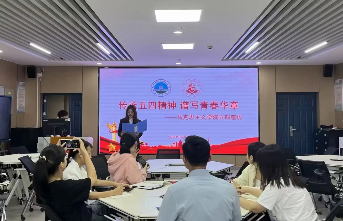 座谈会开始,师生共同观看了《青年朋友的知心人》《中国青年》等三个短视频。“国家的希望在青年,民族的未来在青年。”视频内容激情昂扬,振奋人心。与会人员认真观看,心潮滂湃,感慨万千。