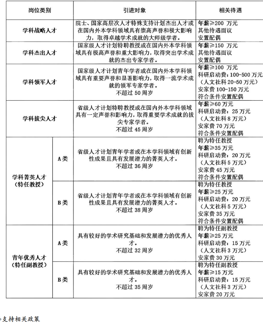 (一)“长大学者”岗位及待遇